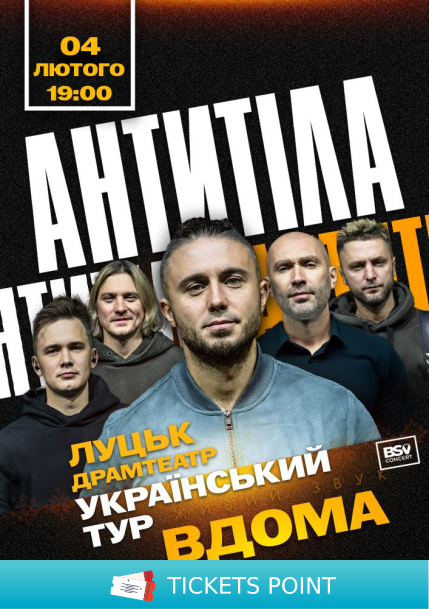 Квитки на АНТИТІЛА. Всеукраїнський тур «Вдома». Луцьк, Волинський академічний обласний український музично-драматичний театр імені Т. Г. Шевченка - 04 Лютого. Концерти купити онлайн на ticketspoint.com.ua