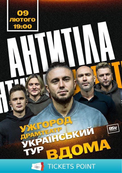 Квитки на АНТИТІЛА. Всеукраїнський тур «Вдома». Ужгород, Закарпатський обласний музично-драматичний театр - 09 Лютого. Концерти купити онлайн на ticketspoint.com.ua