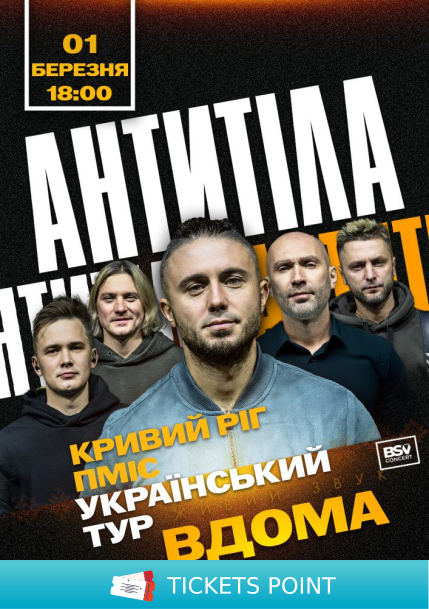 Квитки на АНТИТІЛА. Всеукраїнський тур «Вдома». Кривий Ріг, ПАЛАЦ МОЛОДІ та СТУДЕНТІВ Криворізького національного університету - 01 Березня. Концерти купити онлайн на ticketspoint.com.ua
