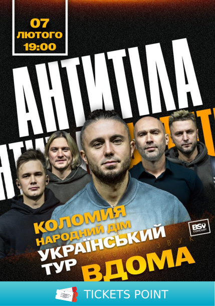Квитки на АНТИТІЛА. Всеукраїнський тур «Вдома». Коломия, Народний дім - 07 Лютого. Концерти купити онлайн на ticketspoint.com.ua