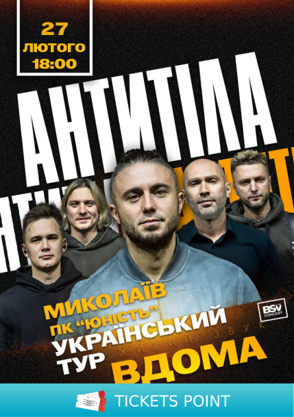 Квитки на АНТИТІЛА. Всеукраїнський тур «Вдома». Миколаїв, Концерт-хол «Юність» - 27 Лютого. Концерти купити онлайн на ticketspoint.com.ua