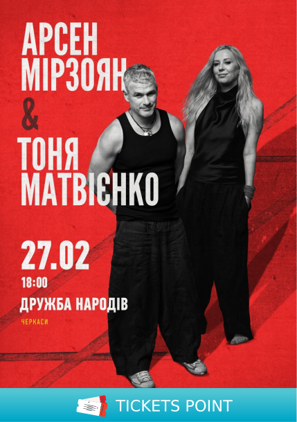 Квитки на Арсен Мірзоян та Тоня Матвієнко. Вперше разом!. Черкаси, ПК «Дружба народів» - 27 Лютого. Концерти купити онлайн на ticketspoint.com.ua