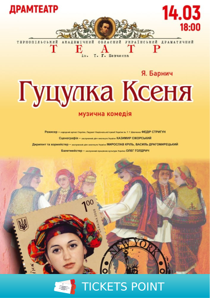 Квитки на Гуцулка Ксеня. Музична комедія. Ужгород, Закарпатський обласний музично-драматичний театр - 14 Березня. Купити онлайн на ticketspoint.com.ua