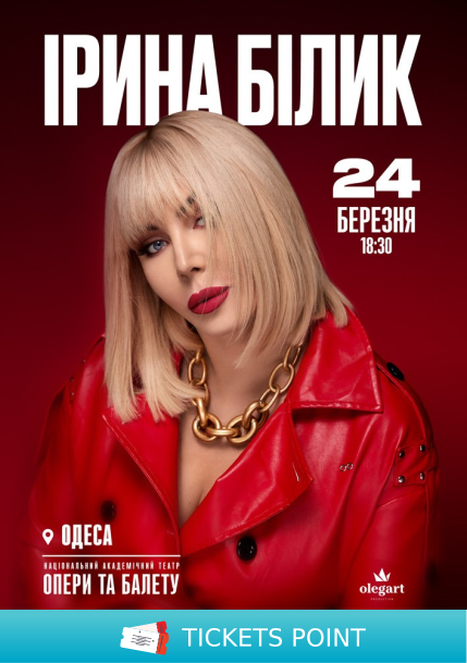 Квитки на Ірина Білик. Одеса, Одеський театр Опери та Балету - 24 Березня. Концерти купити онлайн на ticketspoint.com.ua