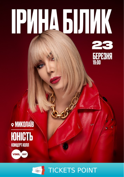 Квитки на Ірина Білик. Миколаїв, Концерт-хол «Юність» - 23 Березня. Концерти купити онлайн на ticketspoint.com.ua
