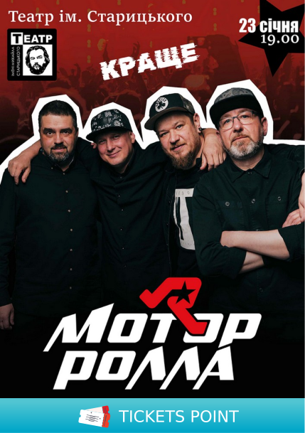 Квитки на Мотор`ролла. Хмельницький, Хмельницький обласний академічний муздрамтеатр ім. М. Старицького - 23 Січня. Концерти купити онлайн на ticketspoint.com.ua