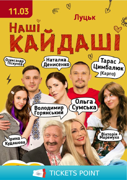 Квитки на «Наші КАЙДАШІ» (Луцьк). Луцьк, Волинський академічний обласний український музично-драматичний театр імені Т. Г. Шевченка - 11 Березня. Купити онлайн на ticketspoint.com.ua
