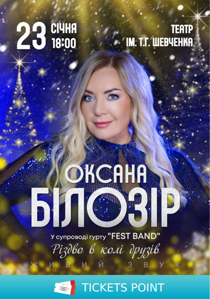 Квитки на Оксана Білозір. «Різдво в колі друзів». Луцьк, Волинський академічний обласний український музично-драматичний театр імені Т. Г. Шевченка - 23 Січня. Концерти купити онлайн на ticketspoint.com.ua