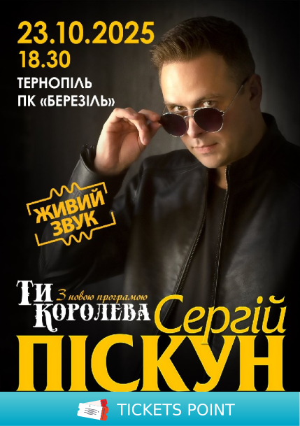 Квитки на Сергій Піскун з програмою «Ти Королева». Тернопіль, Палац культури «Березіль» ім. Леся Курбаса - 06 Лютого. Концерти купити онлайн на ticketspoint.com.ua