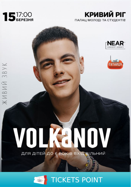 Квитки на Volkanov (Кривий Ріг). Кривий Ріг, Палац молоді та студентів Криворізького національного універсітету - 15 Березня. Концерти купити онлайн на ticketspoint.com.ua