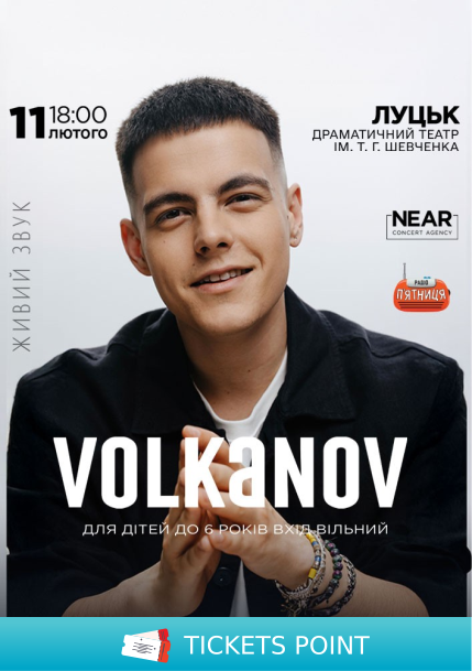 Квитки на Volkanov (Луцьк). Луцьк, Волинський академічний обласний український музично-драматичний театр імені Т. Г. Шевченка - 11 Лютого. Концерти купити онлайн на ticketspoint.com.ua